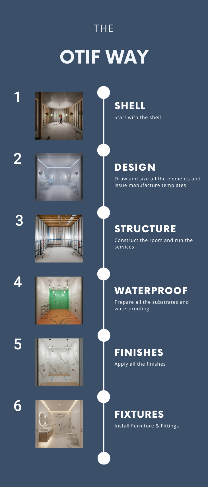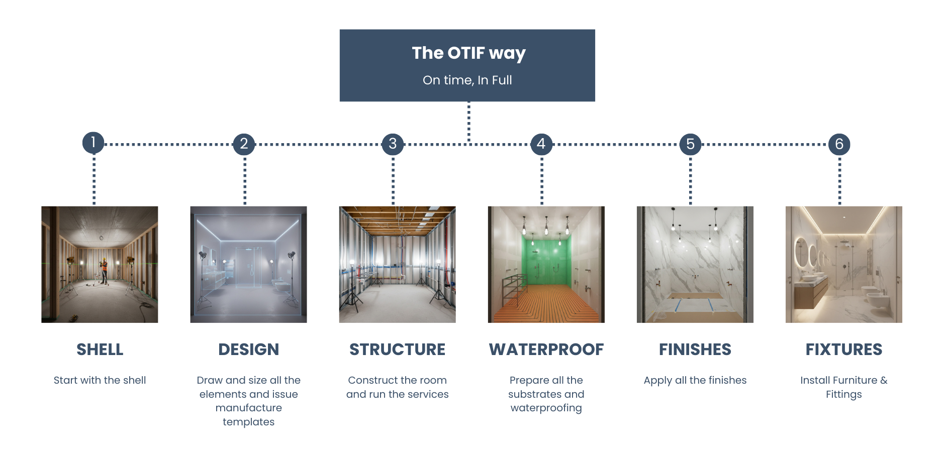 We deliver complete bathroom packages for main contractors, in the ”OTIF Way.